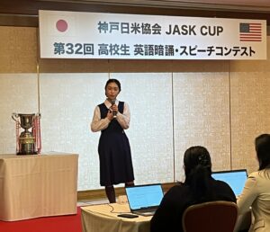 神戸日米協会「第32回高校生英語暗誦・スピーチコンテスト」最終選考会が2025年1月26日(日)に、神戸ポートピアホテル、布引・北野の間にて、開催されました。本年度の最終選考会は、予備選考会を通過した13名の高校1年生が「あなたが叶えたいwishを教えてください」というテーマでスピーチを各自で作成し発表する、といった内容にアップデートして開催されました。